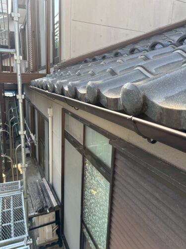 ☆昨シーズンの雪の影響でしょうか。落雪した雪の重みにより、軒樋が歪んで破損していました。