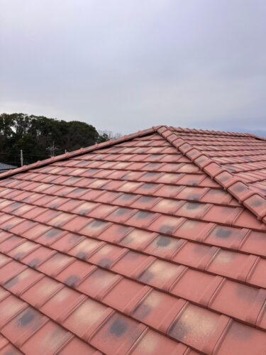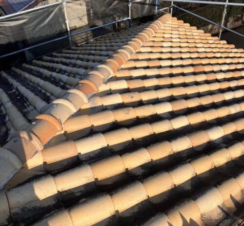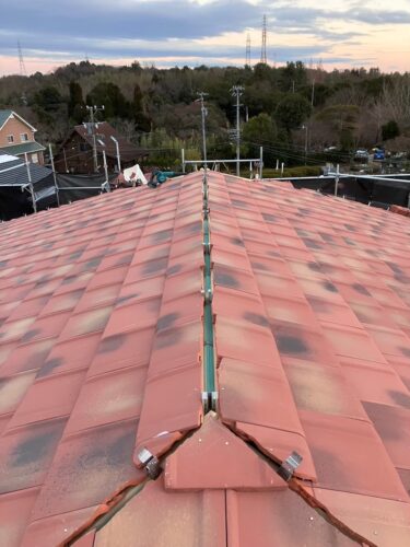 ☆緩やかなS字カーブの形状をしている洋風瓦から、フラットな平板瓦への葺き替え工事です。