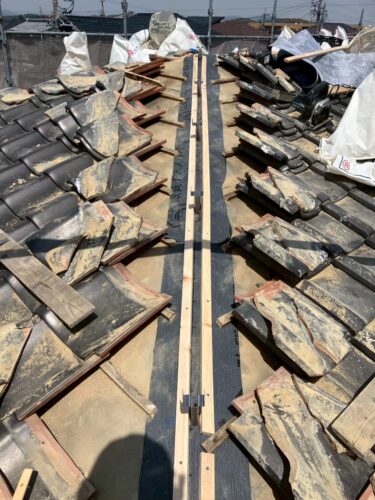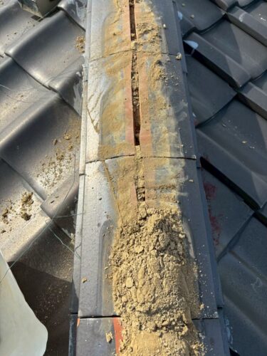 既存の棟瓦等を取り外すと、壁土がぎっしり詰められていました